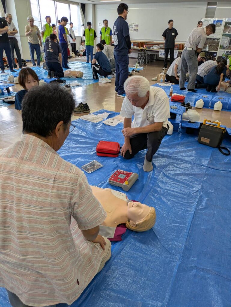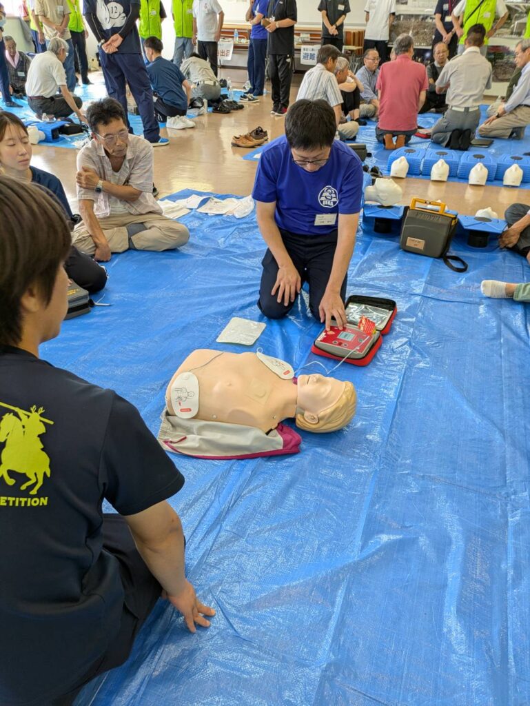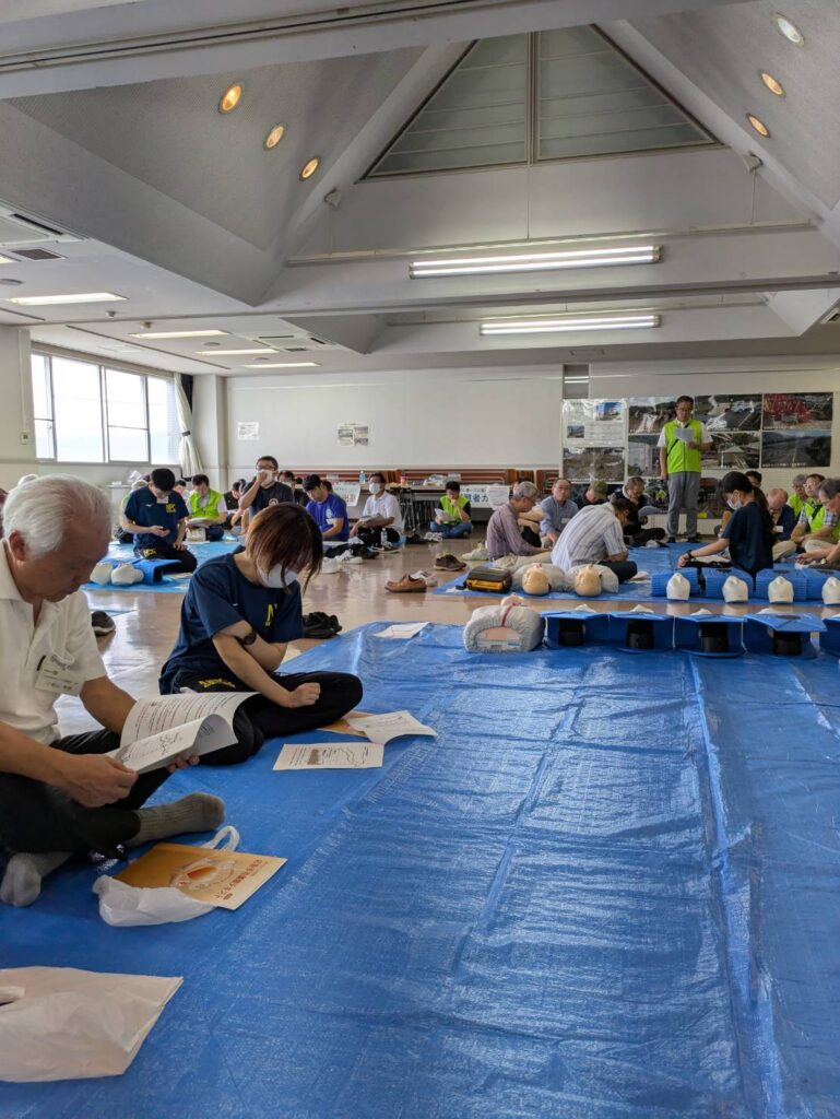 参加者の皆様は、訓練用の人形を相手に、真剣な表情で胸骨圧迫や人工呼吸の手順を一つひとつ確認し、救命の技術を学んでいました。